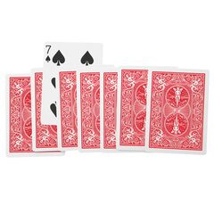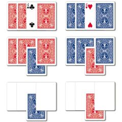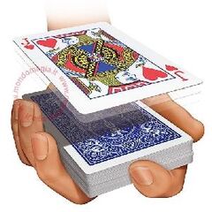 Il prestigiatore mostra un mazzo tagliato diagonalmente. Stendendo le due metà sul tavolo si mostra come le carte siano completamente diverse in entrambe i mazzetti. Le carte vengono girate di dorso e due spettatori vengono invitati a scegliere ognuno una mezza carta dal mazzetto che si...