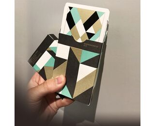 "Questa è la seconda edizione di Casual Playing Cards. Il design, rispetto all'originale, è stato accuratamente rifinito. Il dorso sfoggia un motivo geometrico pulito con uno spettro di colori Pantone e tinte piatte: verde menta, oro metallizzato, nero e bianco. Le figure...