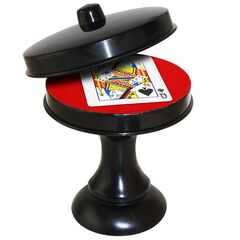 Una carta viene scelta da uno spettatore e poi viene persa nel mazzo di carte. Il mago quindi apre a ventaglio il mazzo di carte a faccia in giù ed estrae una carta dal centro del ventaglio. Senza guardare la faccia della carta, il mago posiziona la carta coperta nella scatola e la...