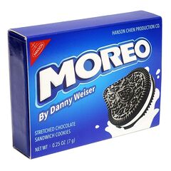 "MOREO" può essere eseguito con biscotti uguali reali. Estraete un biscotto da un pacchetto nuovo di zecca e lentamente lo allungate in una forma strana, quindi lo spezzate a metà e lo condividete con gli spettatori. Inoltre, MOREO non vi permette solamente di allungare...