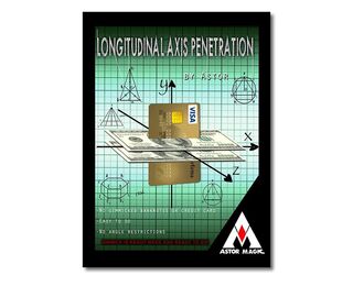 Due banconote sono infilate all&rsquo;interno di un &nbsp;pannello trasparente. Il pannello ha al suo centro una fessura. Una carta di credito viene infilata in questa fessura magicamente penetrando entrambe le banconote nel loro esatto centro!<br />"&nbsp;<br /> Ecco a...