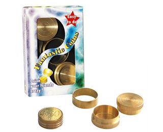 Quattro monete appaiono e scompaiono incredibilmente sotto gli occhi degli spettatori. Poi passano attraverso il tappo stesso di ottone o addirittura attraverso la mano dello spettatore. Gli effetti si susseguono in modo davvero magico. • Facilissimo da fare: il gioco è meccanico....
