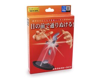 Una normale moneta viene inserita in un astuccio con l’ausilio di una slitta. Uno spadino, infilato al centro dell’astuccio, blocca il passaggio della moneta, eppure, come per magia, la moneta riesce a passare e uscire dal lato opposto, attraversando misteriosamente lo spadino....