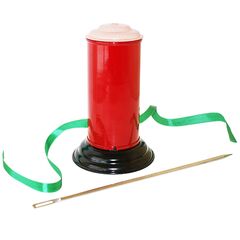 Il mago mostra al pubblico un attrezzo in legno con quattro fori nel suo centro e quattro funghetti colorati sulla sua base. In ogni foro inserisce un palloncino di colore diverso. Ora, mentre egli è girato di spalle, chiede ad uno spettatore di scegliere un funghetto colorato, mostrarlo...